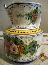 Brocca e tazze in ceramica dipinti a mano