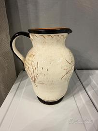 Brocca in ceramica decorata stile rustico con manico – colore crema e nero