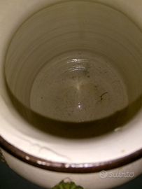 Brocca da vecchia osteria per vino con disegni inseriti e manico in ceramica pesante cm 14 circa no segno o sbeccature