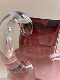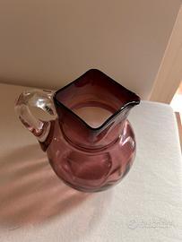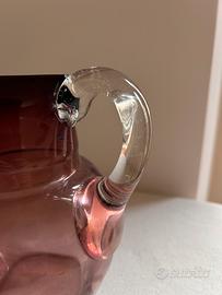 Splendida brocca vintage in vetro soffiato color ametista con manico in cristallo trasparente applicato a caldo. L'oggetto presenta caratteristiche tipiche della manifattura artistica di Murano anni 20.