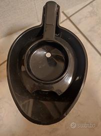 brocca in vetro con tappo nero di plastica.