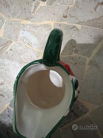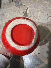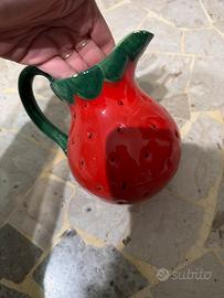 Brocca rossa a forma di fragola che pur essendo solo stata sempre in esposizione risulta usurata in vari punti come si può vedere in foto