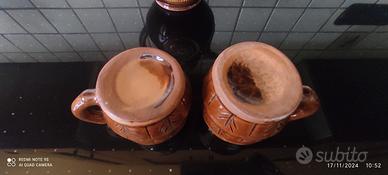 Vendo brocca con due bicchieri di argilla terra cotta . Marone lucida anni '80 come da foto. Fabbricazione - Bulgaria.