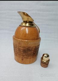 Elegante caraffa termica da tavola da Aldo Tura per Macabo, in legno, ottone, tappo originale in sughero e ampolla interna in vetro. Manico e beccucio in ottone corpo in legno laccato. Dimmi : 15 x 25 cm. ( 1 litro)