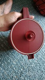 Vendo brocca Tupperware di colore rosso. È in plastica e si presenta in buone condizioni, con qualche piccolo segno di usura.