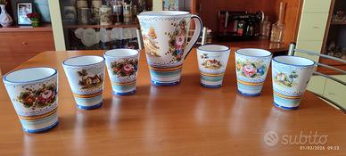 vendo brocca vintage con 6 bicchieri in ceramica Deruta. Mai usati