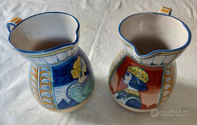 Due brocche di ceramica L'Antica di Deruta, altezza 21cm, diametro imboccatura 11,5cm, perfette