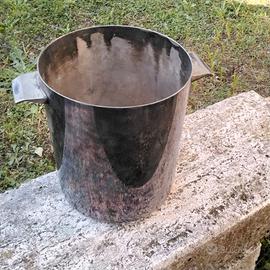 Vendo porta champagne Broggi milano in alpacca argentato ( argentone) anni 60/70 , introvabile, per collezionisti del vintage, stile Gio Ponti con timbro broggi nella parte sotto più un timbro Gera (?). Altezza cm.19, diametro cm. 16, circonferenza cm.52. Da lucidare. Non presenta nessun tipo di ammaccatura, anche il bordo superiore è intatto. Nei miei annunci è presente anche un cestello più basso, sempre a marca Broggi, probabilmente usato come porta ghiaccio. Vendo a € 180. Consegna a mano su Roma.