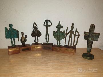 6 repliche di bronzetti nuragici in bronzo e una mater mediterranea in terracotta leggermente sbeccata in omaggio