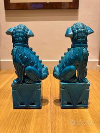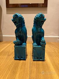 Pair of Colorful Ceramic Foo Dogs – Chinese Guardian Lion Statues for Feng Shui & Home Decoration - coppia di cani brucia incenso Cinesi, portafortuna, turchesi, ceramica, alti circa 20 cm.