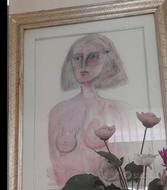 Opera firmata. anno 16 /6/1982 con autentica e timbro della galleria. Acquarello su tela 50 ×70 consegna a mano su Torino.