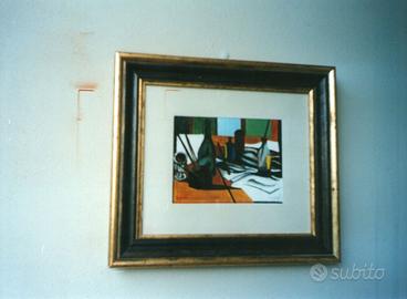 BRUNO ZEVI OLIO SU CARTONE PRESSATO 1946 DIMENSIONI CM. 18X24 CORNICE IN LEGNO CM. 42X48 RARA OPERA DEL 1946 DEL GRANDE ARCHITETTO