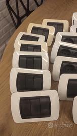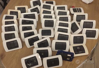 pacchetto completo di materiale elettrico BTicino living light costo di listino nuovo 800 euro: 3 prese 14 prese bipolari 1 campanello bagno 3 prese TV 53 tappi 10 shuko 37 supporti 3 moduli 36 placche 3 moduli 2 supporti 4 moduli 2 placche 4 moduli 2 interruttori bipolari 2 connettori telefonici 1 pulsante suoneria 15 tra (deviatori, interruttori e invertitori) 2 tasti campanello
