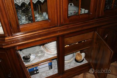 vendo buffet in noce massiccio con vetrina e cassetti su richiesta mando altre foto più dettagliate.prodotto artigianale quindi niente truciolare o impiallacciato tutto noce massiccio.gli artigiani italiani lavorano veramente bene. trasporto a carico dell' acquirente e consiglio una azienda specializzata in trasporto mobili visto la delicatezza dell' oggetto