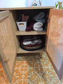 La nostra collezione Bohemian è stata progettata per dare un tocco naturale e vintage ai vostri interni con mobili in canna. Il carattere dell'arredamento in legno si fonde perfettamente con la semplicità della lavorazione del vimini che veste i mobili con eleganza. Tavolino, porta TV, comodino... Questa collezione offre una selezione di mobili contenitori per arredare la casa con leggerezza.