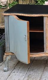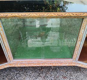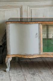 madia buffet credenza shabby vetrinetta centrale con ripiano in vetro nero credenza colore grigio chiarissimo luce L 217 x 50 x H 90. per info su WhatsApp 3392998537 Loano SV. Non spedisco