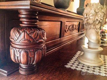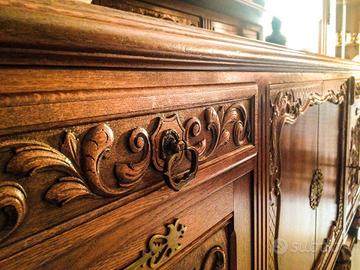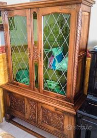 Vendo per ragione di spazio buffet basso con sportelli e cassetti tutti con chiave, credenza molto bella con due vetrine e due sportelli con chiave, tutti e due i pezzi sono in legno massiccio e costruiti artigianalmente, si possono acquistare anche singolarmente.