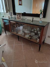 Vendo due buffet vintage in legno mogano, uno con vetrina ed uno con ante. Vendibili anche separatamente.