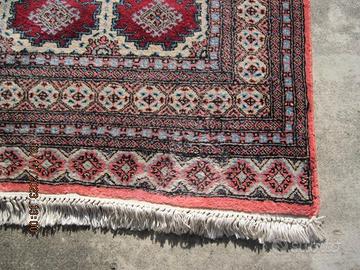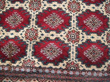 Trama e ordito cotone, pieno vello in lana morbidissima e vellutata, annodatura a mano serrata extra-fine.