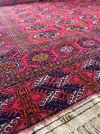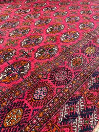 Meraviglioso tappeto Bukara. Utilizzato pochissimo. Lavato sanificato e riposto. Misura quadrata 2m X 2m (rara) disegno geometrico e colori vivissimi. Frange lunghe come da tradizione. Senza difetti. Completo di certificato di autenticità