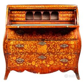 DUTCH WALNUT AND FLORAL MARQUETRY BOMBE CYLINDER BUREAU