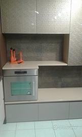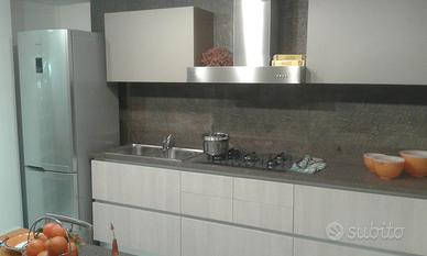 Elettrodomestici : forno e paino cottura Electrolux, cappa Faber 90 cm INOX, lavello 2 vasche INOX, frigo Samsung a vista INOX da 60cm (H 200 cm).