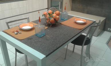 Tavolo : 140 x 80, struttura alluminio, piano in Pietra Naturale Porfido Viola.