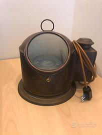 Bussola funzionante/lampada da arredamento marca Esdaile e Sons Sidney ( arredo marino antico) del periodo 1950 appartenuta a una nave cargo demolita in Australia, sapientemente modificata in lampada . Materiale rame e ottone.