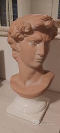 Busto in terracotta con base smaltata raffigurante il David di Michelangelo. Misure: Base: 20 cm. X 20 cm. Altezza: 50 cm. Come nuovo, nessun difetto.