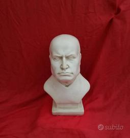 Busto in gesso alabastro bianco antichizzato misure 27,5x16,5cm profondita 114,5 cm peso ca kg2, 3 raffigurate Benito Mussolini.