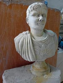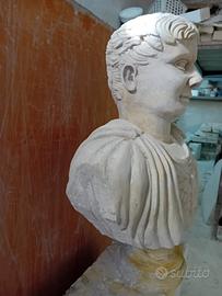 Busto raffigurante Cesare Augusto, scolpito a mano in pietra bianca di Palazzolo Acreide,Siracusa.
