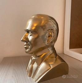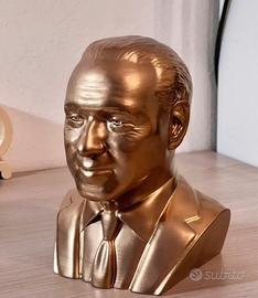 Bellissimo Busto di Silvio Berlusconi Dorato stampato in 3D, successivamente rifinito (in postproduzione: levigatura, riempitivo, stuccaggio, verniciatura). Altezza 20 cm.
