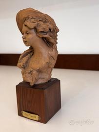 Scultura originale dello scultore Nico Venzo, busto femminile in terracotta su base in legno con targhetta dell’artista.