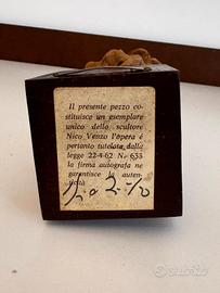 L’opera è pezzo unico, come da cartellino originale applicato sotto la base, con firma autografa di Nico Venzo che ne garantisce l’autenticità ai sensi della legge 22/04/1962 n. 633.