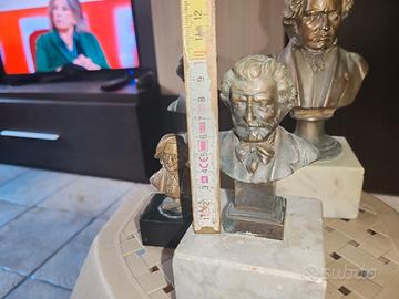 Vendo questi bellissimi busti in bronzo: 2 di Wagner, 1 di Verdi e 1 di Beethoven. Tre hanno supporti in marmo, mentre quello più piccolo è in alluminio.