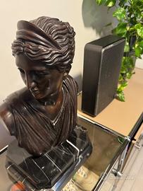 Vendo elegante busto in bronzo raffigurante figura femminile di ispirazione classica (stile greco-romano), montato su solida base in marmo nero con venature bianche.