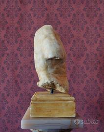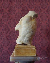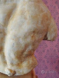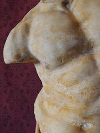 Pensata con massima Fedeltà e Rigore Accademico, la scultura riporta una riproduzione ad altissima fedeltà dell'opera ellenistica conservata negli Uffizzi. Il processo di realizzazione artigianale è stato guidato dalla ricerca della massima accuratezza: l'opera non presenta discrepanze nei dettagli rispetto al capolavoro originale, offrendo una resa dei volumi e delle tensioni muscolari di assoluto rigore anatomico. A differenza del comune gesso, il busto presenta un'alta percentuale di Polvere di Marmo di Carrara, che di molto nobilita l'opera, donando pregio costruttivo ed aumentandone la resistenza. La lavorazione è interamente eseguita a mano, con la cura tipica delle migliori accademie italiane, nelle quali l'autore di questa riproduzione si è formato. La superficie è trattata per ottenere una texture materica e ricercata, studiata per evocare il fascino dei reperti antichi. Si specifica che tale effetto, come nella nostra filosofia, è stato ottenuto senza l'utilizzo di materiali chimici o industriali: acqua e terra di Siena sono state sapientemente applicate dall'artista per conferire l'elegante patina che dona l'effetto antico, quindi è stata per ultimo rifinita con un ulteriore strato di cera di candela, garantendo così, al colore datogli in precedenza, di non sbiadire o cambiare tonalità col tempo, oltre che a donare una piacevolissima sensazione al tatto ed impermeabilità maggiore. Il basamento è stato pensato in coerenza allo stile artistico, con modanature e forme tipiche dell'epoca Ellenistica, oltre che permettere al busto di roteare sulla base, permettendo al possessore di esporlo con l'angolazione più gradita. Con i suoi 37 cm di altezza, l'opera possiede una maestosità che la rende un elemento d'arredo di rara eleganza, capace di nobilitare qualsiasi ambiente. (N.B. Ogni nostra opera è realizzata a mano, e non ripetuta meccanicamente in serie, potrebbe quindi esserci qualche lievissima differenza con le foto)