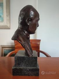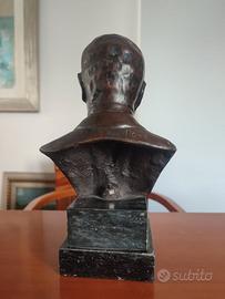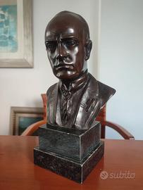 Vendo busto in bronzo raffigurante Benito Mussolini, opera firmata “Rossi” sul retro del colletto. La scultura, di grande impatto espressivo, è montata su una base in marmo nero levigato, che dona eleganza e solidità all’insieme. Oggetto raro, da collezione o esposizione.