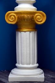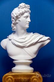 Busto romano in Marmocemento, colore bianco, molto pesante, circa 60kg, H. 80, L. 65. Perfetto per arredo negozio, abitazione, giardino o studio, perfette condizioni, inoltre colonna di supporto anche essa in Marmocemento bianco con capitello in oro, H. 77, B. 45x42, circa 80kg, perfette condizioni.