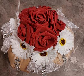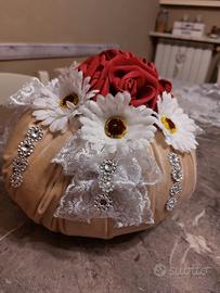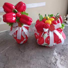 centro tavola per cucina fatto a mano con vasetto uguale con peperoni finti molto bello introvabile idea regalo o centro tavola fiori e stoffa velluto bellissimi !!!!