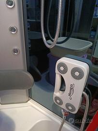 vendo doccia angolare in cristallo a cabina con vasca angolare 100cmx100 completa di tutti i confort tra cui stereo con radio bluetooth telefono ,sauna bagno turco con idromassaggio e cromoterapia+ ventilazione per aereazione . Oggetto pari al nuovo pagato 2 anni fa' 1600€ vendo a €700