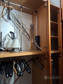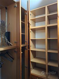 Capiente cabina armadio di ottima fattura artigianale in legno di ciliegio massello e tenuta in buonissime condizioni. Misure: altezza 260 x lunghezza lato corto 102/lunghezza lato lungo 128 x profondità lato corto 45/profondità lato lungo 61 cm. I due armadi sono separabili.