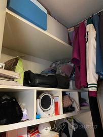 Cabina armadio bianca completa con mobile 4 cassetti, tre ripiani e 2 barre appendi abiti. Ottime condizioni