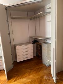 Vendo cabina armadio angolare completa, molto capiente e ben organizzata internamente. Ideale per camera da letto. Misure indicative: Lato 1: 163 cm Lato 2: 185 cm Lato chiusura/frontale: circa 200 cm Altezza: 265 cm Ottima soluzione salvaspazio. Ritiro a mano a Milano, smontaggio e trasporto a carico dell’acquirente.