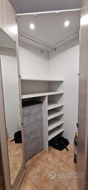 Vendo splendida cabina armadio angolare a 2 ante battenti, perfetta per ottimizzare lo spazio e organizzare al meglio il guardaroba. Il mobile è in condizioni eccellenti e completo di ogni comfort.
