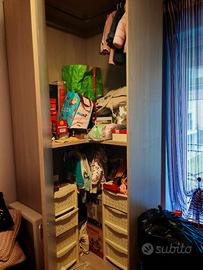 Vendesi cabina armadio angolare, altezza 260 cm, lati muro 100 cm x 100 cm, profondità 57 cm. Il lato destro presenta dei piccoli fori in quanto erano montate delle mensole, ora non presenti. Si vende esclusivamente per questioni di spazio, già smontato, ritiro dalla metà di giugno a carico dell'acquirente, a 160 euro trattabili.