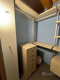 Mobili per cabina armadio in buonissimo stato (da negozio arredamento di qualità). Rimodulabile secondo proprie esigenze, sia altezze che disposizione degli elementi. Il settimanale a sei cassetti è posizionabile anche separatamente dall'interno dello spazio cabina (misure: larghezza 45 prof 47 altezza 103). Disponibile per qualsiasi tipo di informazione.