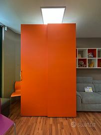 Ampia cabina armadio con cassettiera, bicolore: arancione e bianco. Misure: 153x106