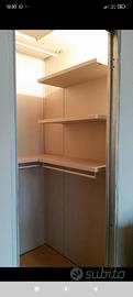 cabina armadio legno componibile con ripiani barre appenderie e 1 cassettiera. altezza 258 mt larghezza pannelli 83.5 / 77 / 76 / 60/ 36
