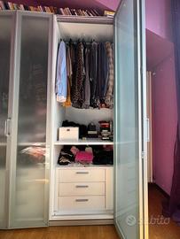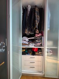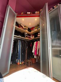 Vendiamo un armadio composto da : Una cabina armadio triangolare ( 160x160) e da due armadi rettangolari con profondita 60 e larghezza totale 160. Scaffalatura e cassetti compresi Altezza 2,30 Rimango a disposizione per qualsiasi specifica .